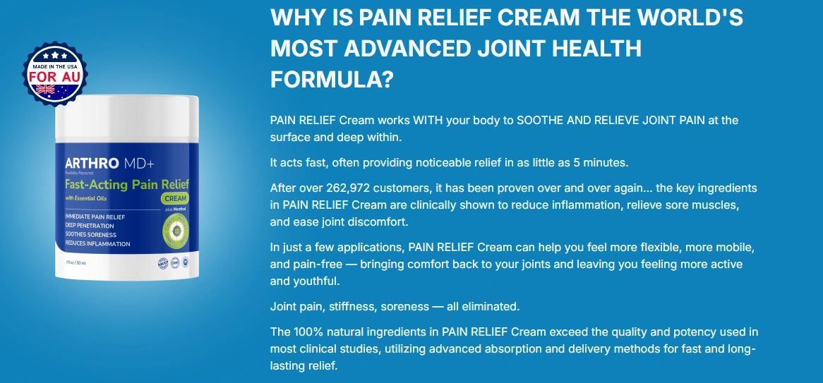 Arthro MD+ Cream Australia stands as a trusted and effective solution for anyone looking to relieve joint discomfort naturally. With its blend of herbal ingredients, anti-inflammatory compounds, and quick absorption, it not only provides instant pain relief but also supports long-term joint strength and flexibility. Whether you’re managing arthritis, soreness, or age-related stiffness, this cream helps you move with ease and live pain-free.